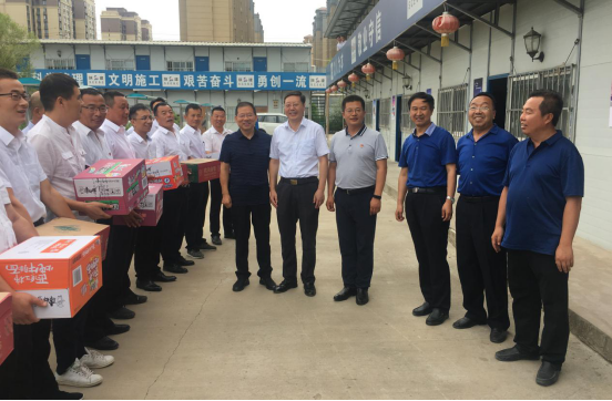 8月9日上午,延安大學校長張金鎖,副校長楊偉宏,校辦主任劉述進、工會主席白澤生一行到延安大學新校區(qū)項目慰問一線職工,陜建十三公司董事長、總經(jīng)理卜國平一同慰問,延大校辦、工會及新校區(qū)辦公室相關(guān)負責人參加慰問活動。