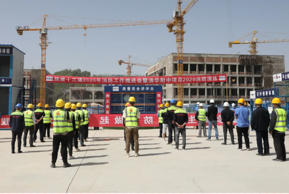 在第19個全國“安全生產(chǎn)月”之際,為切實加強項目安全管理工作,提高全員安全防范意識和自救能力,及時排除消防安全隱患,防患于未然。5月17日,陜建十三建公司以“消除事故隱患,筑牢安全防線”為主題在清華附中項目舉行2020年消防工作推進會并開展了應(yīng)急消防演練。建設(shè)單位、監(jiān)理單位、現(xiàn)場管理人員等40余人參加。