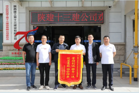 5月26日, 延安水務(wù)投資建設(shè)有限責(zé)任公司工程部部長(zhǎng)侯海濤一行,為陜建十三建公司送來(lái)一面寫著“管理到位 服務(wù)一流 優(yōu)質(zhì)高效 國(guó)企擔(dān)當(dāng) ”的錦旗,并對(duì)十三建公司優(yōu)質(zhì)高效服務(wù)給予了高度評(píng)價(jià)。