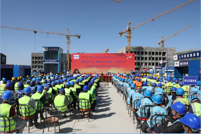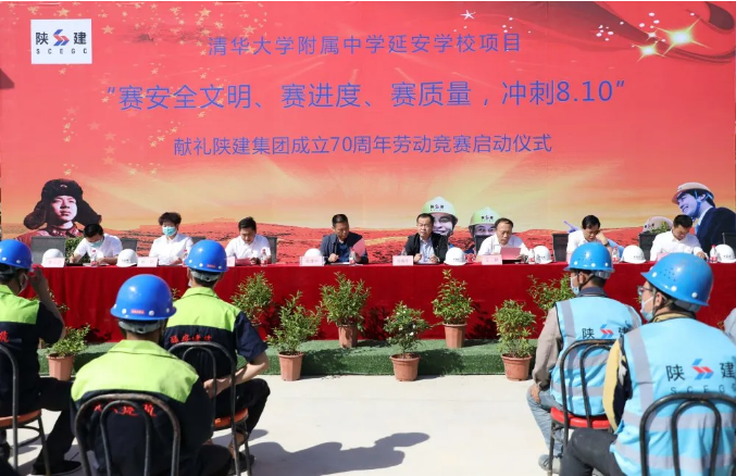 5月28日,陜建十三建公司清華大學(xué)附屬中學(xué)延安學(xué)校項(xiàng)目舉行“賽安全文明、賽進(jìn)度、賽質(zhì)量,沖刺8.10”獻(xiàn)禮陜建集團(tuán)成立70周年勞動競賽啟動儀式。