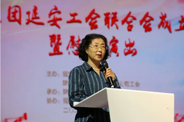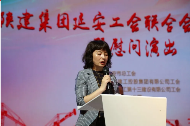 陜建集團(tuán)女工委主任、機(jī)關(guān)工會(huì)主席劉愛(ài)英同志宣讀陜建集團(tuán)工會(huì)成立延安工作站的文件。