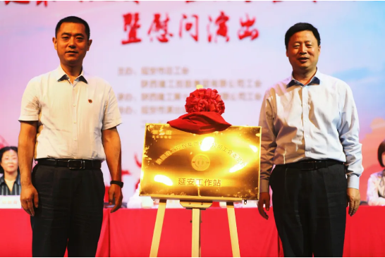 陜西省建設(shè)工會(huì)主席徐富權(quán)同志,陜建集團(tuán)黨委常委、工會(huì)主席劉小強(qiáng)同志共同為陜西建工集團(tuán)工會(huì)延安工作站揭牌。