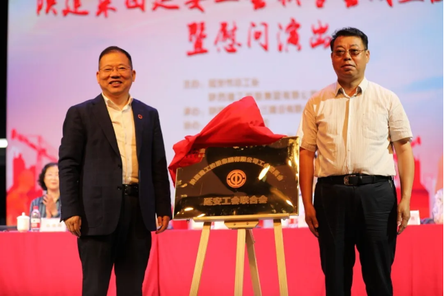 延安市總工會(huì)常務(wù)副主席宋殿勇同志,陜建十三建公司黨委書(shū)記、董事長(zhǎng)卜國(guó)平同志共同為陜建集團(tuán)延安工會(huì)聯(lián)合會(huì)揭牌。