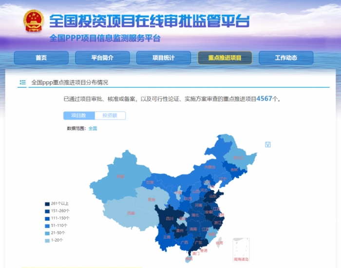 據(jù)全國(guó)PPP項(xiàng)目信息監(jiān)測(cè)服務(wù)平臺(tái),7月18日發(fā)布的數(shù)據(jù)顯示,截至6月底,全國(guó)ppp已通過(guò)項(xiàng)目審批、核準(zhǔn)或備案,以及可行性論證、實(shí)施方案審查的重點(diǎn)推進(jìn)項(xiàng)目4567個(gè)。