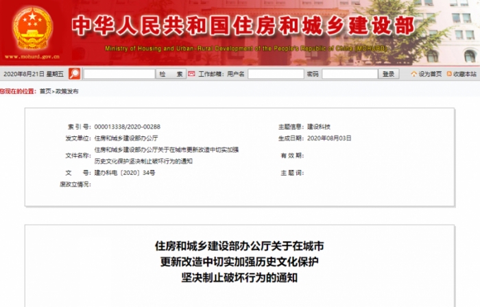 日前,住建部辦公廳下發(fā)《關(guān)于在城市更新改造中切實(shí)加強(qiáng)歷史文化保護(hù)堅(jiān)決制止破壞行為的通知》,要求,在城市更新改造中切實(shí)加強(qiáng)歷史文化保護(hù),堅(jiān)決制止破壞城市片區(qū)和建筑的行為。