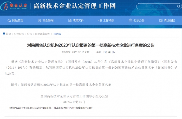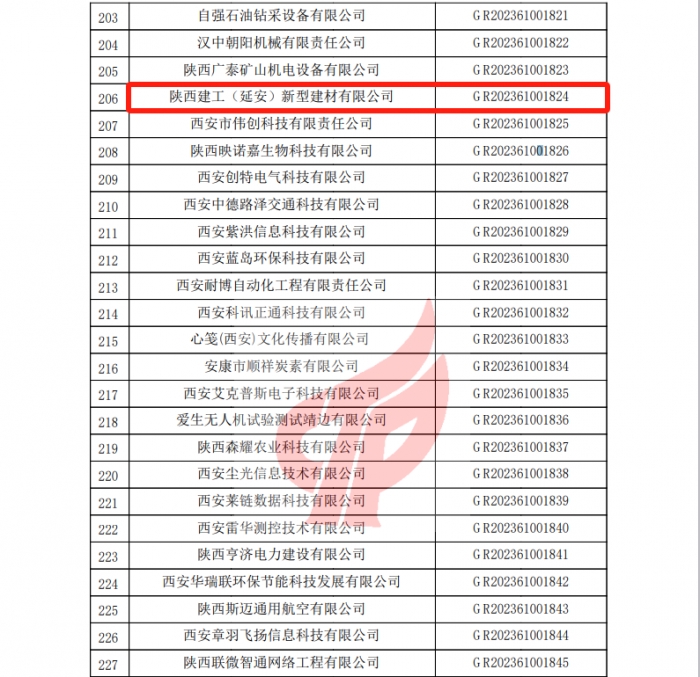 近日,全國高新技術(shù)產(chǎn)業(yè)企業(yè)認(rèn)定管理工作領(lǐng)導(dǎo)小組辦公室公布了2023年陜西省認(rèn)定的第一批高新技術(shù)企業(yè)名單,集團(tuán)新型建材產(chǎn)業(yè)基地【陜西建工(延安)新型建材有限公司】通過國家級高新技術(shù)企業(yè)認(rèn)定。